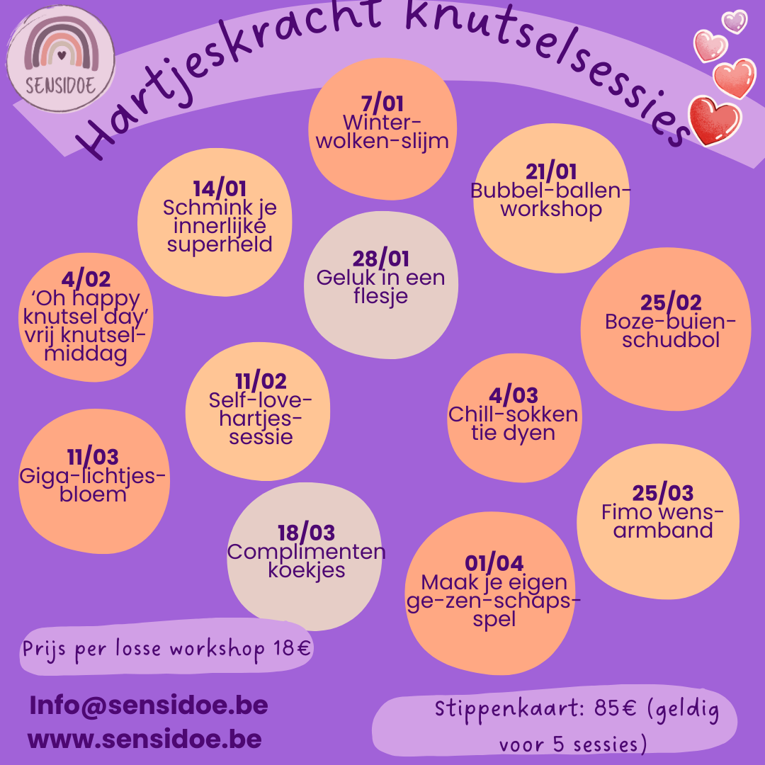 Elke workshop is 20€ per kind, minimum 6, maximum 8 kinderen.
